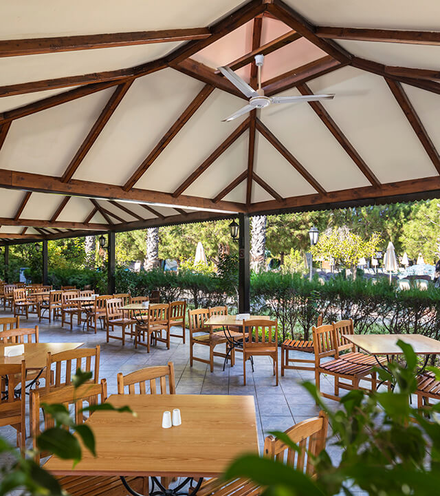 Ali Bey Club Manavgat’ın dev aquapark alanında yer alan Aqua Restoran, eğlenceli aktiviteler arasında lezzetli bir öğle yemeği molası için ideal bir duraktır.