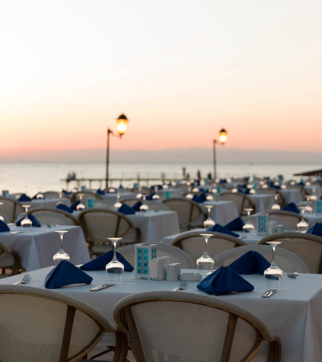 Havuz kenarında konumlanan Ali Bey Club Restoran, kahvaltıdan akşam yemeğine kadar zengin açık büfesiyle Türk, Akdeniz, Çin ve İtalyan mutfaklarından özel tatlar sunar.